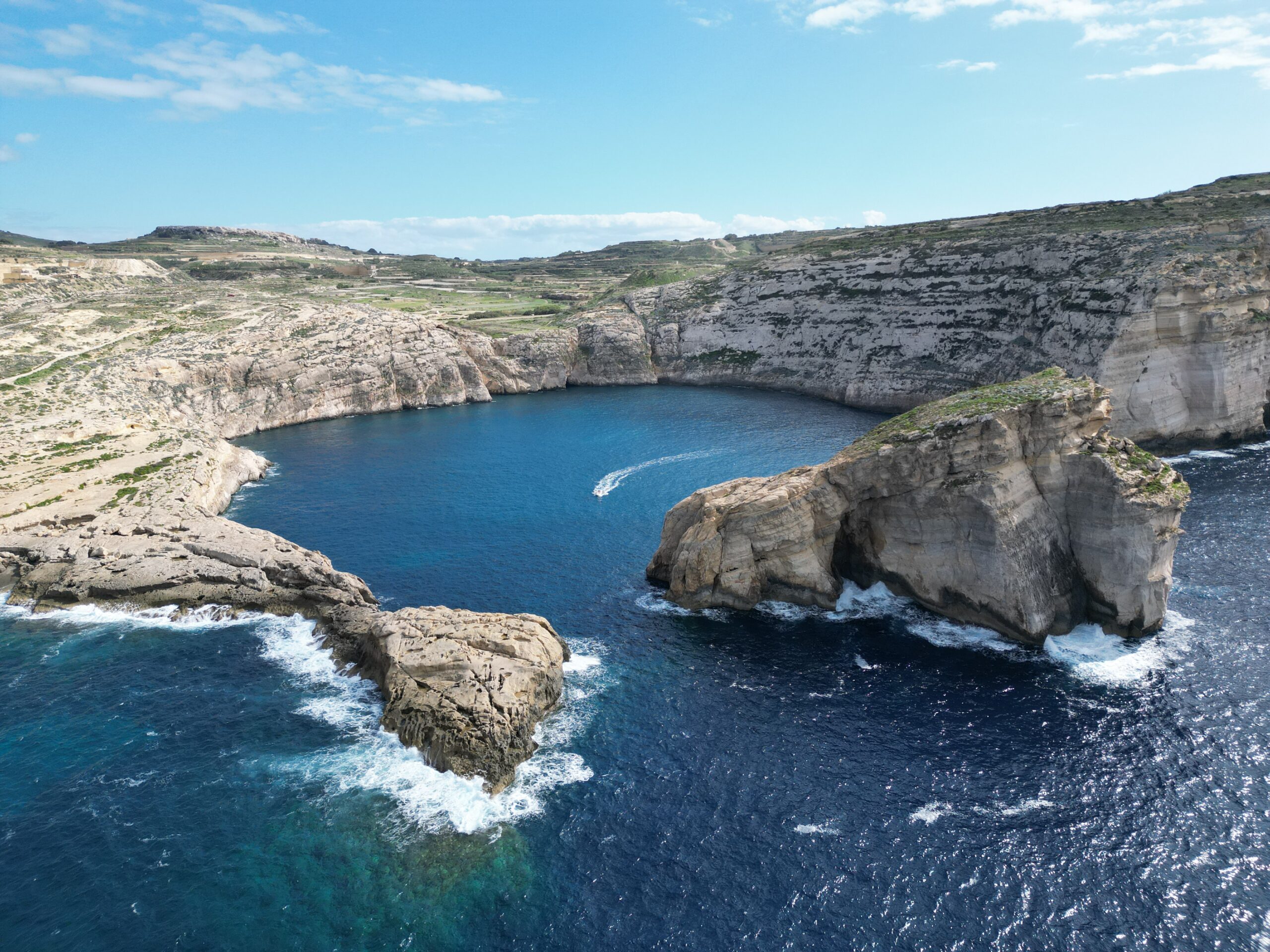 Po śniadaniu podjedziemy autobusem do Zatoki Dwejra, gdzie obejrzymy charakterystyczne formacje skalne, wewnętrzne morze, a także pozostałości po słynnym Azure Window.
